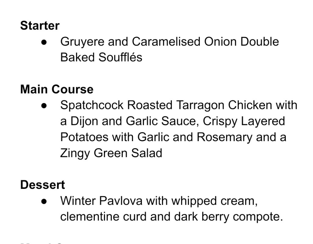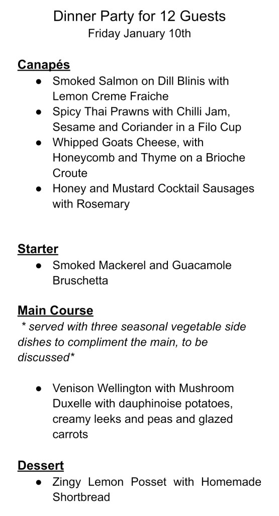 Deluxe 4 Course Dinner Party for 12 Guests From £60 per head
