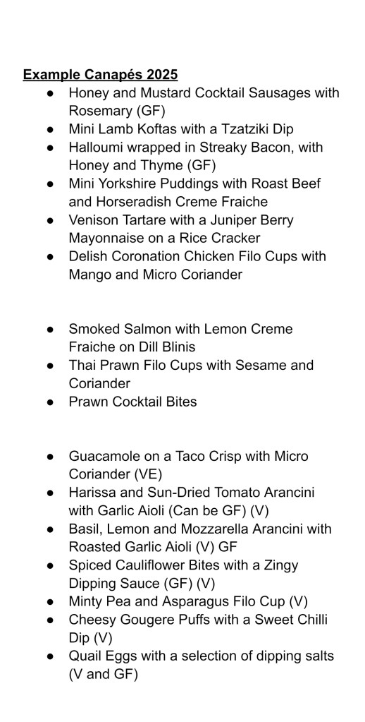 For whatever the occasion, a menu can be made for your event. Have a look at these examples for some inspiration.